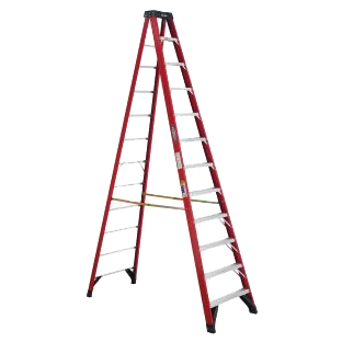 The 6312 Fiberglass 12 ft. Step Ladder is ideal for professional contractors and industrial users. With a duty rating of 375lb, it features a HolsterTop® with the Lock-In System to secure tools from falling while keeping them right at hand. The ladder offers a full set of rear horizontals and heavy duty internal spreaders. All steps are knee braced and the foot pads are riveted to the EDGE® structure. The EDGE bracing system helps protect the rail from damage. Each Traction-Tred® step is slip resistant and double riveted. Fiberglass rails are non-conductive for working near electricity.
