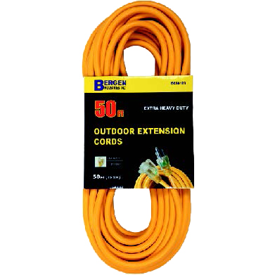 Bergen SJTW Extension Cord, 12 AWG, 3 Conductor, Yellow, 100 ft L Cord