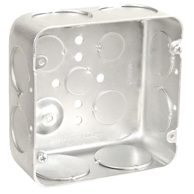 Garvin® Square Box, 12 Knockouts, 1/2 to 1-1/4 in Conduit Knockouts, 42 cu-in, Drawn, Steel, Galvanized, 4-11/16 in H x 4-11/16 in W x 2-1/8 in D