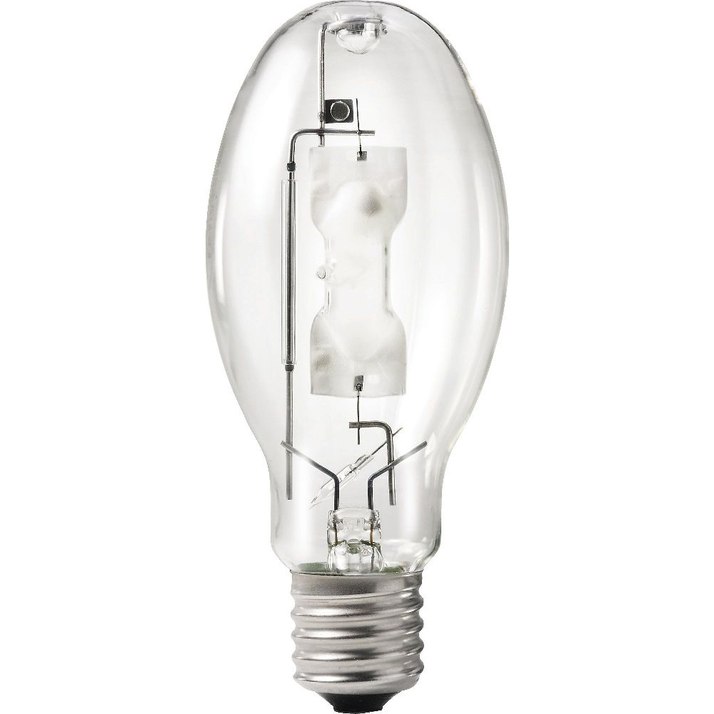 Philips Metal Halide Lamp, 250 W, ED28 Lamp Shape, Mogul (E39) Lamp Base, 22000 Initial Lumens, 15400 Mean Lumens, 3800 K Color Temperature, 62 CRI, 12,000 hr Average Life, Pulse Start, Unprotected Arc Tube, Enclosed Fixture, Universal Operating Position, M153/M138/E ANSI Code, Clear Lamp Finish, 3.5 in Dia x 8.31 in L