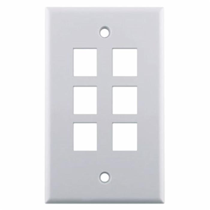 Pass & Seymour® Classic Keystone Wallplate, 1 Gang, 6 Port, Standard Size, Box Mount, Plastic, White, 4.69 in H x 2.94 in W x 0.44 in D
