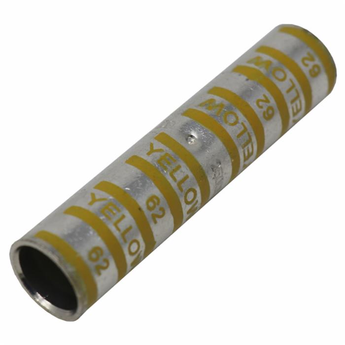 Color-Keyed® Compression Splice, Long Barrel, 250 MCM Conductor, 62 Die Code, Yellow Die Color, 600 VAC to 35 kVAC, 0.79 in Dia Barrel, 3.38 in OAL, Copper, Tin Plated