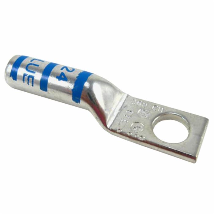 Color-Keyed® Compression Lug, 1-Hole, Long Barrel, 6 AWG Conductor, #10 Stud, 24 Die Code, Blue Die Color, 600 VAC to 35 kVAC, Straight Tongue, 0.65 in L x 0.44 in W x 0.08 THK Tongue, 0.3 in Dia Barrel, 1.65 in OAL, Copper, Tin Plated