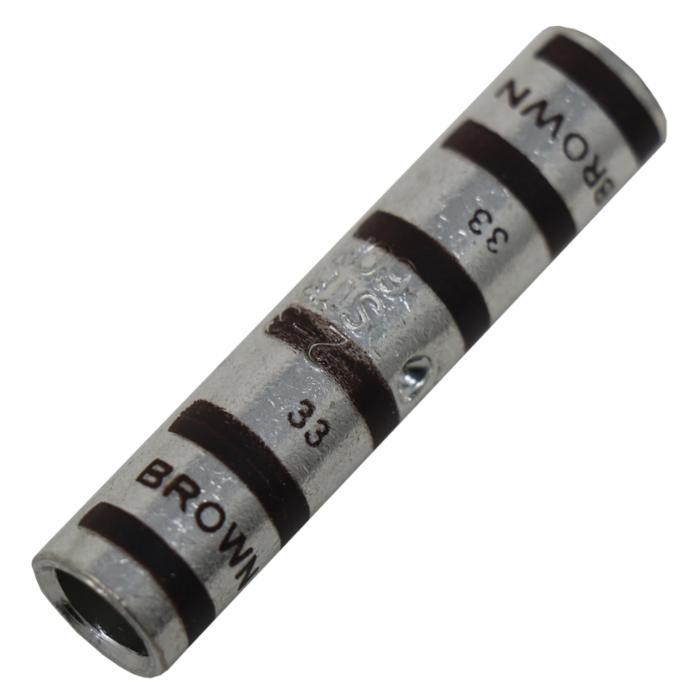 Color-Keyed® Compression Splice, Long Barrel, 2 AWG Conductor, 33 Die Code, Brown Die Color, 600 VAC to 35 kVAC, 0.43 in Dia Barrel, 1.88 in OAL, Copper, Tin Plated
