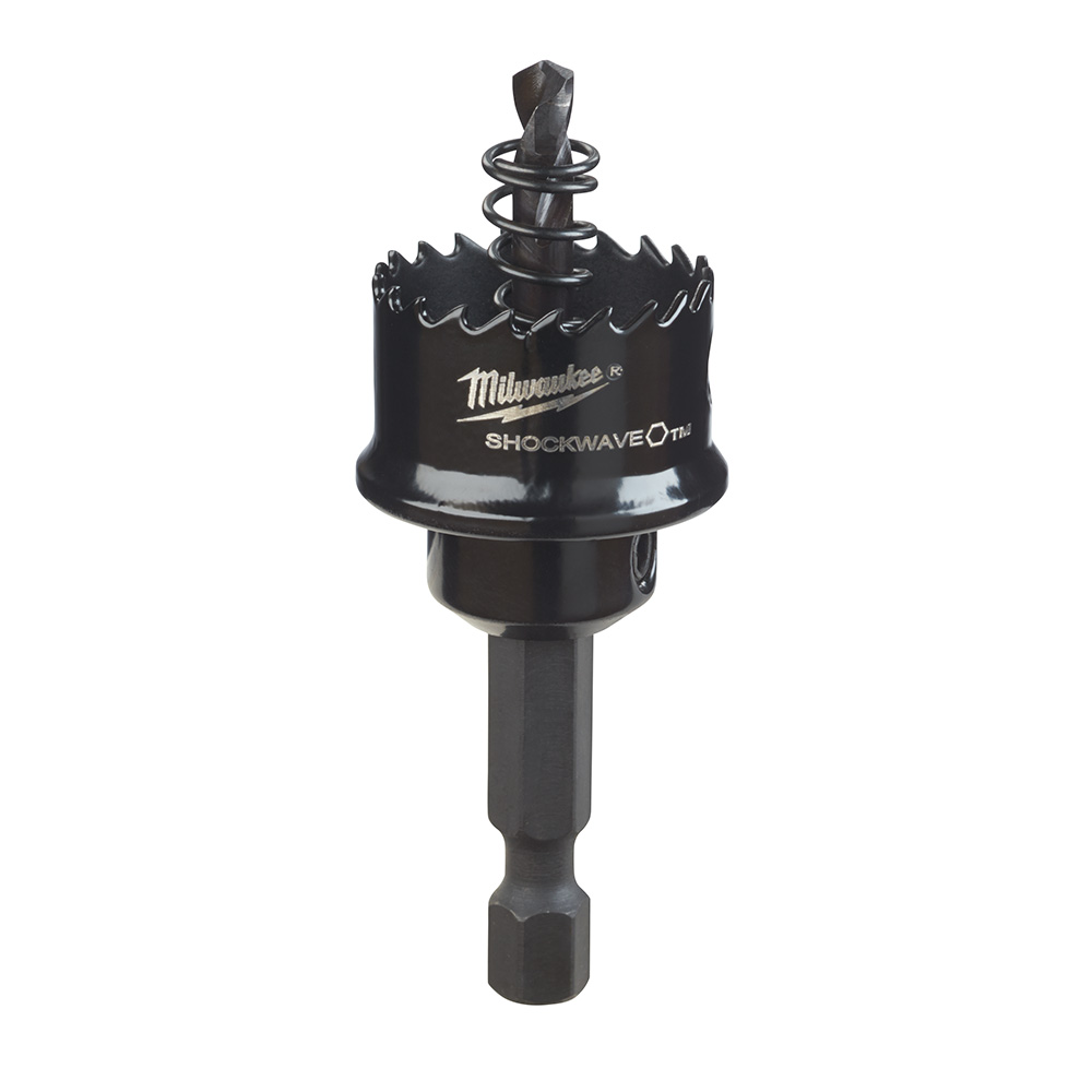 Designed with a robust 1/4 In. quick change hex shank, Milwaukee® SHOCKWAVE™ Impact Duty™ hole saws give professionals a hole making solution to use with impact drivers. Utilizing a thin wall, 8 TPI design, SHOCKWAVE™ impact hole saws deliver a burr-free cut up to 40% faster than standard bi-metal hole saws. The included ejection spring removes the frustration of manually removing slugs by automatically ejecting the material. A stop shoulder design prevents over-drilling into material and potentially damaging inner components of electrical and junction boxes. Chose SHOCKWAVE™ impact hole saws for use in plastics and thin gauge metals up to 1/8 In. thick.