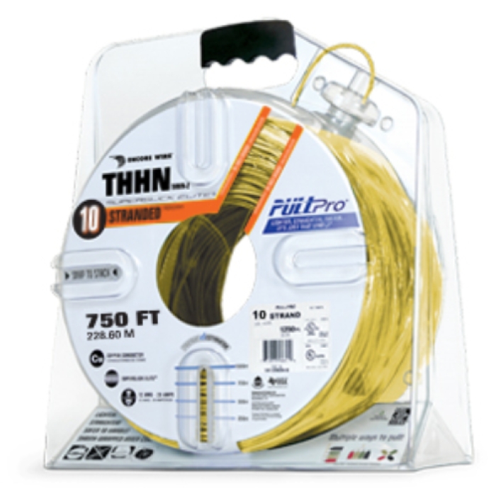 Encore Wire SuperSlick Elite® THHN Copper Building Wire, 10 AWG, Stranded, Yellow, (2) 750 ft PullPro® Cartons