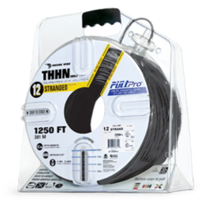 Encore Wire SuperSlick Elite® THHN Copper Building Wire, 12 AWG, Stranded, Black, (2) 1250 ft PullPro® Cartons