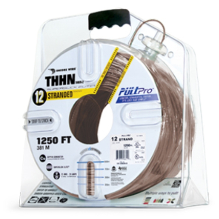 Encore Wire SuperSlick Elite® THHN Copper Building Wire, 12 AWG, Stranded, Brown, (2) 1250 ft PullPro® Cartons
