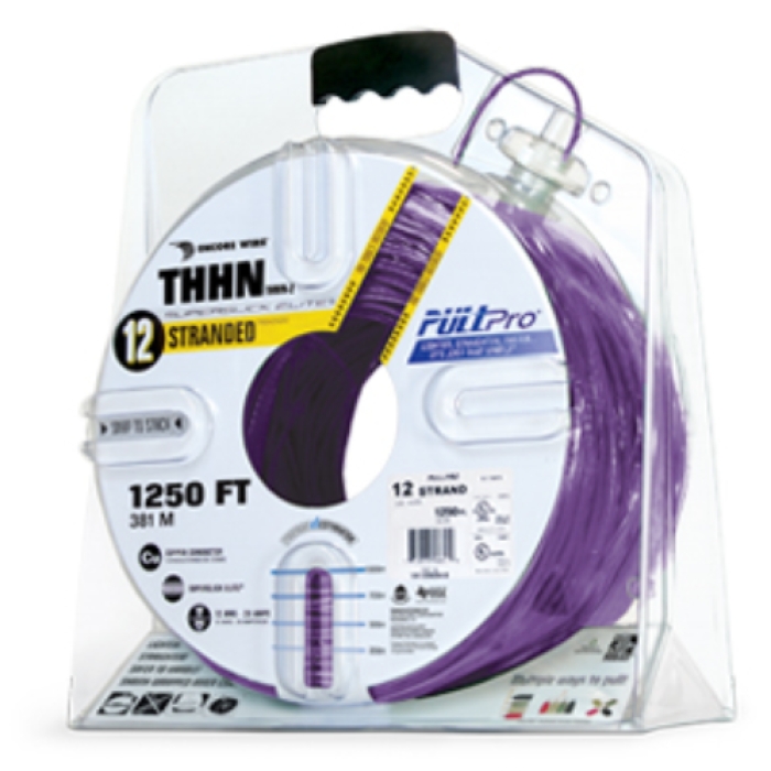 Encore Wire SuperSlick Elite® THHN Copper Building Wire, 12 AWG, Stranded, Purple, (2) 1250 ft PullPro® Cartons