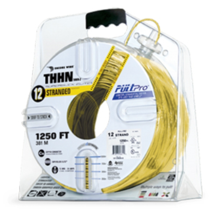 Encore Wire SuperSlick Elite® THHN Copper Building Wire, 12 AWG, Stranded, Yellow, (2) 1250 ft PullPro® Cartons