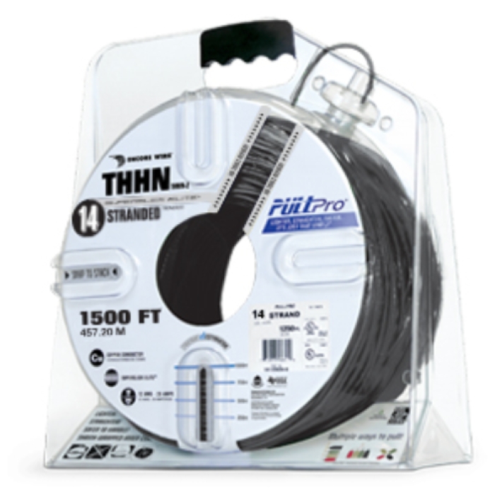 Encore Wire SuperSlick Elite® THHN Copper Building Wire, 14 AWG, Stranded, Black, (2) 1500 ft PullPro® Cartons