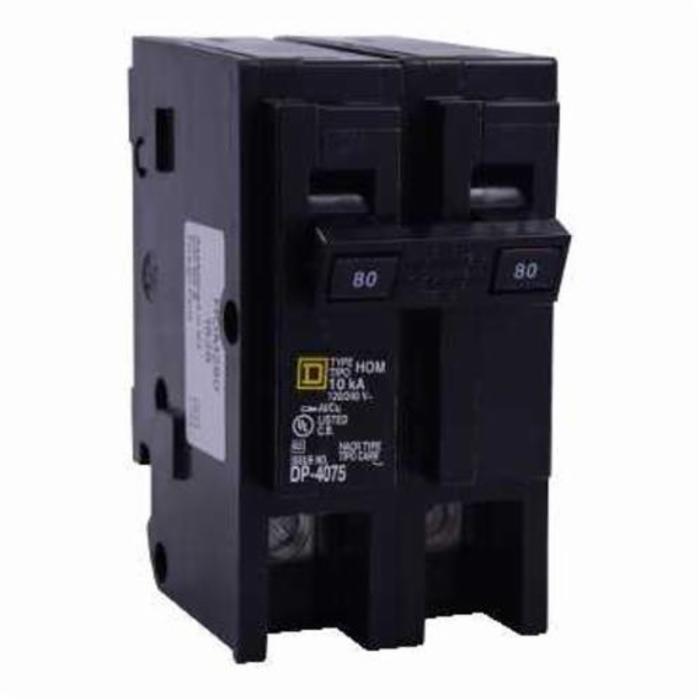 Square D™ Miniature Circuit Breaker, Homeline™ Series, 2 Pole, 90 A, 120/240 VAC, 10 kA, Screw Clamp Connection, 4 to 2/0 AWG Al/Cu Wire, Plug In Mount, For Use With: Homeline™ Load Center, 3.13 in H x 2 in W x 2.98 in D