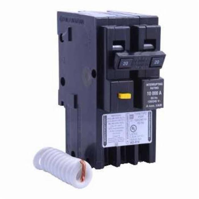 Square D™ Ground Fault Circuit Breaker, Homeline™ Series, 2 Pole, 20 A, 120/240 VAC, 10 kA, Screw Clamp Connection, 12 to 4 AWG Al, 14 to 6 AWG Cu Wire, Plug In Mount, For Use With: Homeline™ Load Center, 3.13 in H x 2 in W x 2.98 in D