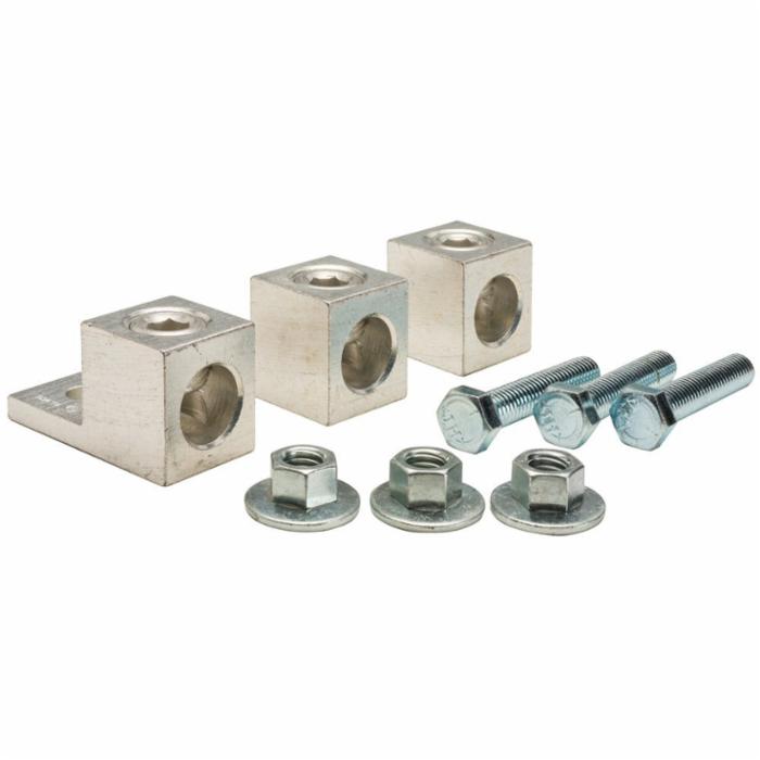 Square Dâ„¢ Mechanical Lug Kit, 6 AWG to 350 MCM Wire Size, 3/8 x 2 in Cap Screw 101 to 250 A, Direct Mount, 3 Piece, For Use With: 1 Phase Primary, 1 Phase Secondary, 3 Phase Delta Primary, 3 Phase Delta Secondary Transformer