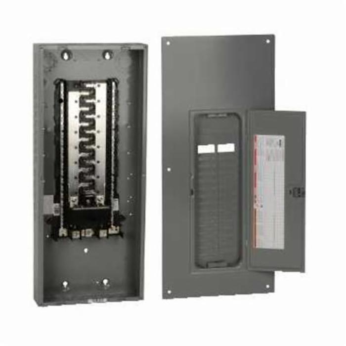 Square D™ Homeline™ Convertible Main Breaker Plug-On Neutral Load Center, 120/240 VAC, 200 A, 1 Phase, 22 kA Interrupt, 30 Spaces, 60 Circuits, 3 Wire, 4 AWG to 250 MCM Al/Cu Wire, Lug Connection, NEMA 1 Enclosure, Combination Flush/Surface Cover, Aluminum Bus, Steel Housing, 33.78 in H x 14.25 in W x 3.75 in D