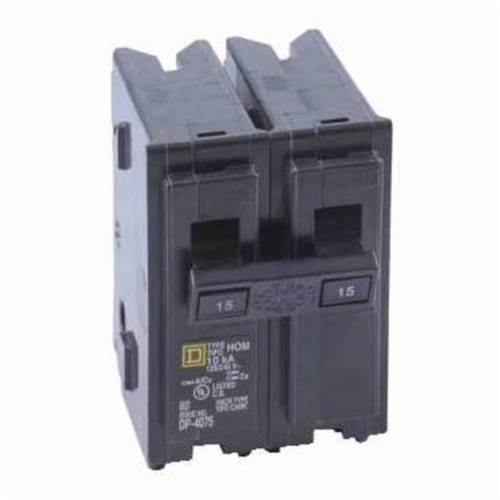 Square D™ Miniature Circuit Breaker, Homeline™ Series, 2 Pole, 15 A, 120/240 VAC, 10 kA, Screw Clamp Connection, 14 to 8 AWG Al/Cu Wire, Plug In Mount, For Use With: Homeline™ Load Center, 3.13 in H x 2 in W x 2.98 in D