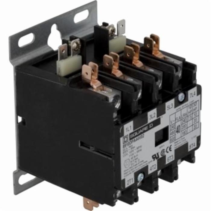 Square Dâ„¢ Definite Purpose Contactor, Series: 8910DPA, 110/120 VAC Coil, 30 A Maximum Inductive Load, 40 A Maximum Resistive Load, 4 Pole, 4NO Contact, 50/60 Hz, 3 hp Maximum 1 Phase Rating, 15/20 hp Maximum 3 Phase Rating, Non-Reversing, 3 Phase, Binder Head Screw/Quick-Connect, Open Device, 3.78 in H x 2.75 in W x 3.04 in D