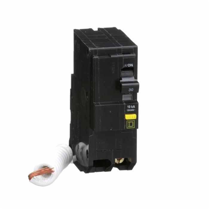 Square D™ Ground Fault Circuit Breaker, QO® Series, 2 Pole, 30 A, 120/240 VAC, 10 kA, Pressure Plate Connection, 12 to 8 AWG Al, 14 to 8 AWG Cu Wire, Plug In Mount, For Use With: QO® Load Center and NQ Series Panelboards, 4.12 in H x 1.5 in W x 2.91 in D