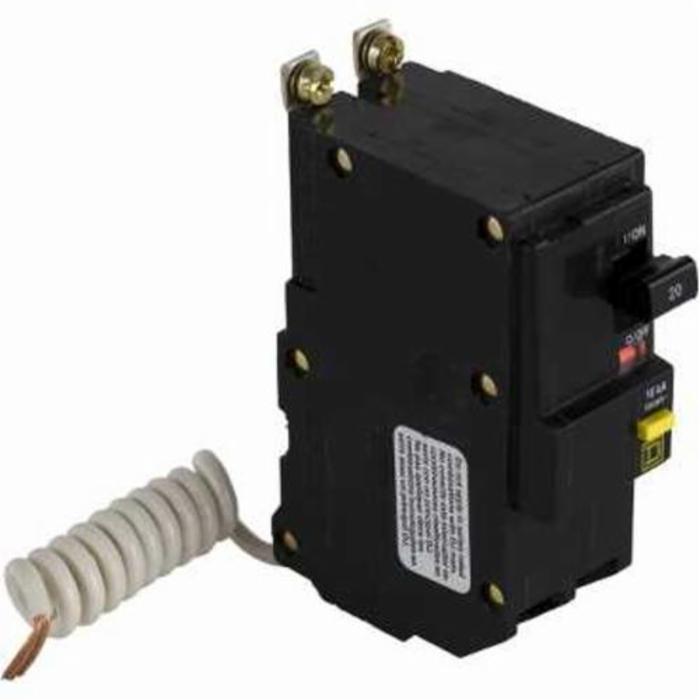 Square D™ Ground Fault Circuit Breaker, QO® Series, 2 Pole, 20 A, 120/240 VAC, 10 kA, Pressure Plate Connection, 12 to 8 AWG Al, 14 to 8 AWG Cu Wire, Bolt On Mount, For Use With: NQ Series Panelboards, 4.12 in H x 1.5 in W x 2.91 in D
