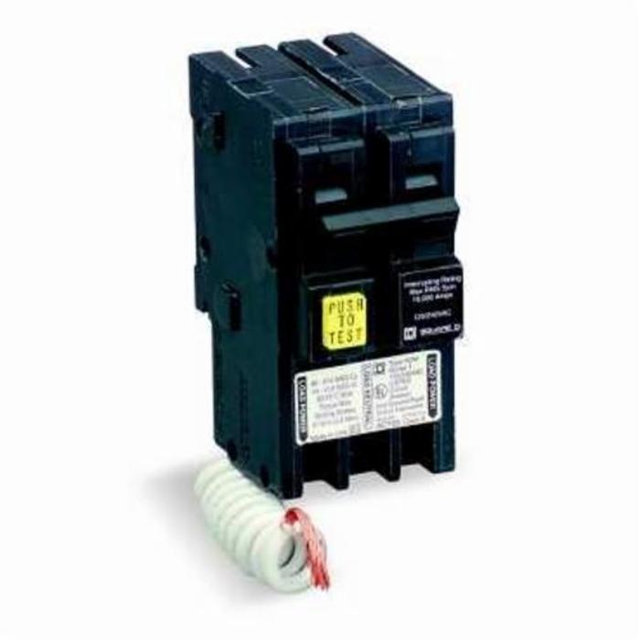 Square D™ Ground Fault Circuit Breaker, Homeline™ Series, 2 Pole, 15 A, 120/240 VAC, 10 kA, Screw Clamp Connection, 12 to 4 AWG Al, 14 to 6 AWG Cu Wire, Plug In Mount, For Use With: Homeline™ Load Center, 3.13 in H x 2 in W x 2.98 in D
