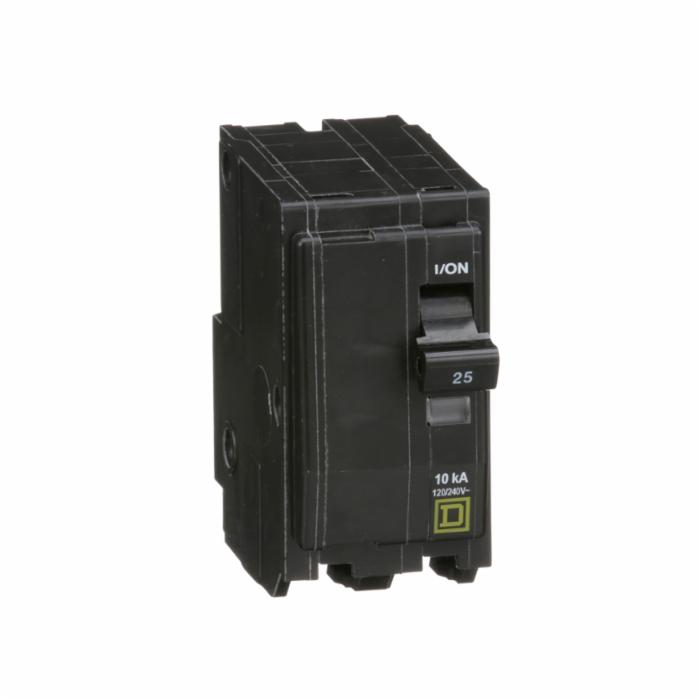 Square D™ Miniature Circuit Breaker, QO® Series, 2 Pole, 25 A, 120/240 VAC, 10 kA, Pressure Plate Connection, 14 to 8 AWG Al/Cu Wire, Plug In Mount, For Use With: QO® Load Center and NQ Series Panelboards, 3 in H x 1.5 in W x 2.91 in D