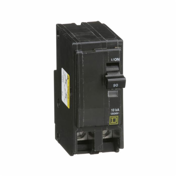 Square D™ Miniature Circuit Breaker, QO® Series, 2 Pole, 90 A, 120/240 VAC, 10 kA, Box Lug Connection, 4 to 2/0 AWG Al/Cu Wire, Plug In Mount, For Use With: QO® Load Center and NQ Series Panelboards, 3 in H x 1.5 in W x 2.91 in D