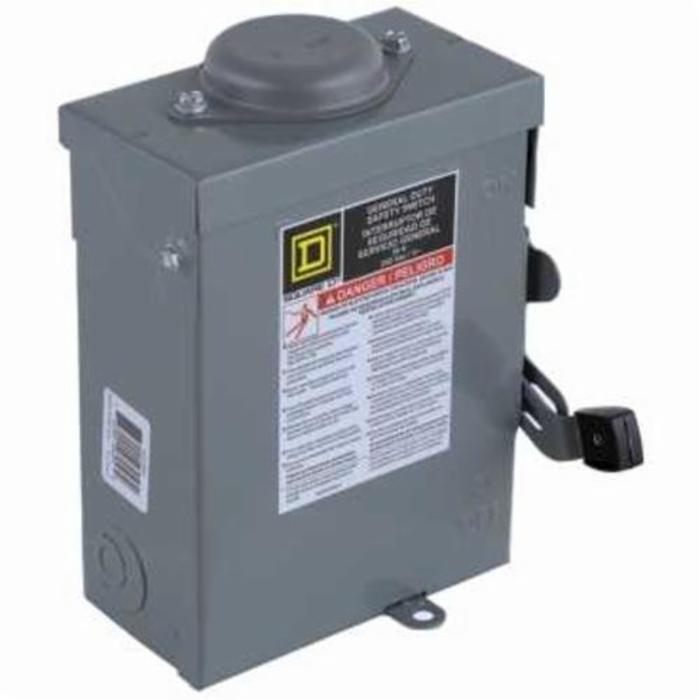 Square D™ Fusible General Duty Single Throw Safety Switch, 240 VAC, 30 A, 2 Pole, 3 Wire, 100 kA Short Circuit, NEMA 3R Enclosure, Surface Mount, Lug Terminal, Steel, 9.63 in H x 7.25 in W x 3.75 in D
