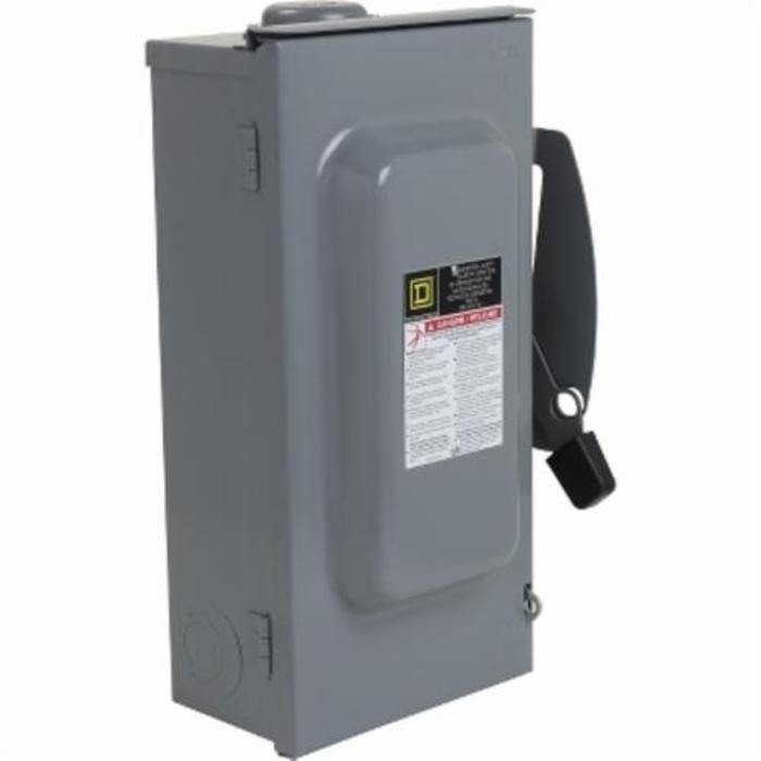 Square D™ Non-Fusible General Duty Single Throw Safety Switch, 240 VAC, 100 A, 3 Pole, 3 Wire, 100 kA Short Circuit, NEMA 3R Enclosure, Surface Mount, Lug Terminal, Steel, 17-1/2 in H x 8-1/2 in W x 6-1/2 in D