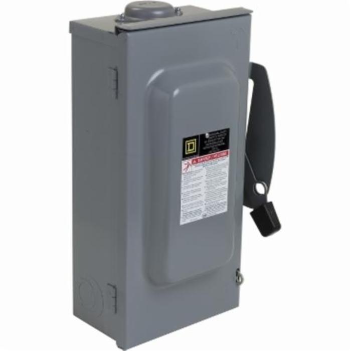 Square D™ Fusible General Duty Single Throw Safety Switch, 240 VAC, 100 A, 3 Pole, 4 Wire, 100 kA Short Circuit, NEMA 3R Enclosure, Surface Mount, Lug Terminal, Steel, 17-1/2 in H x 8-1/2 in W x 6-1/2 in D