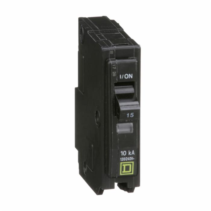 Square D™ Miniature Circuit Breaker, QO® Series, 1 Pole, 15 A, 120/240 VAC, 10 kA, Pressure Plate Connection, 14 to 8 AWG Al/Cu Wire, Plug In Mount, For Use With: QO® Load Center and NQ Series Panelboards, 3 in H x 0.75 in W x 2.91 in D