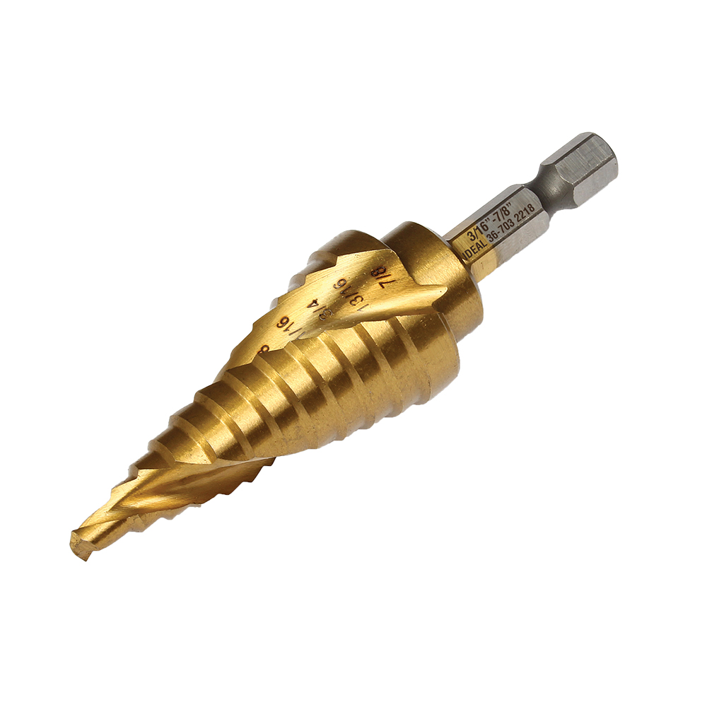 IDEAL® Spiral Step Bit, Split Point, 9 Steps, 1/4 in to 3/4 in Dia, 1/16 in Increments, 1/4 in Hex Shank