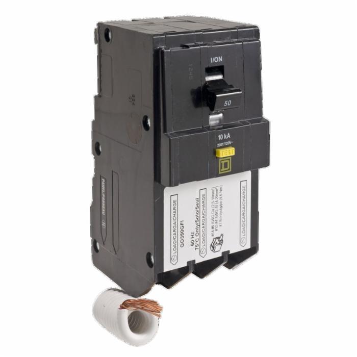 Square D™ Ground Fault Circuit Breaker, QO® Series, 3 Pole, 50 A, 208Y/120 VAC, 10 kA, Box Lug Connection, 12 to 4 AWG Al, 14 to 6 AWG Cu Wire, Plug In Mount, For Use With: QO® Load Center and NQ Series Panelboards, 4.12 in H x 2.25 in W x 2.91 in D