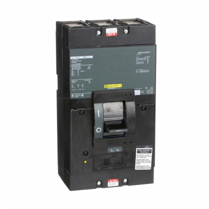 Square D™ Molded Case Circuit Breaker, L-Frame, PowerPact™ Series, 3 Pole, 400 A, 600 VAC, 22 kA, Thermal Magnetic Trip, 2000 A Hold, 4000 A Trip, Line/Load Lug Connection, 1 AWG to 600 MCM Al/Cu Wire, Unit Mount, 11 in H x 6 in W x 5.84 in D