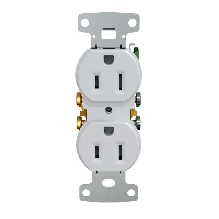 Hubbell Wiring Device-Kellems tradeSELECT® Straight Blade Receptacle, Duplex Self-Grounding Standard Tamper-Resistant Traditional, 125 VAC, 15 A, 2 Poles, 3 Wires, NEMA 5-15R, Residential Grade, -20 to 60 deg C, Push/Side Wired Terminal, Composite/Thermoplastic, White, 4.19 in L x 1.52 in W x 1.03 in H