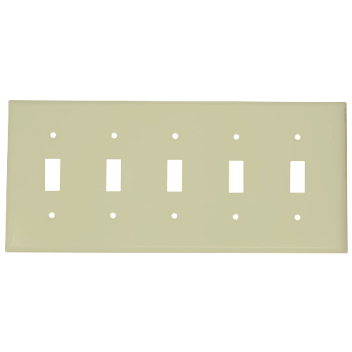 Mulberry Toggle Wallplate, 5-Gang, Standard Size, Device Mount, Steel, Ivory, Hard Baked Wrinkle Finish