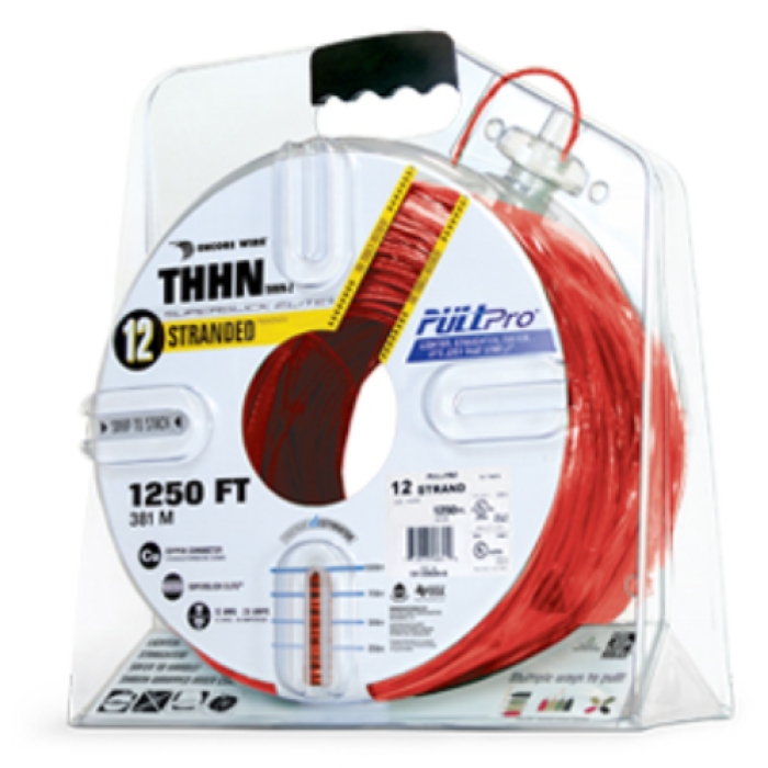 Encore Wire SuperSlick Elite® THHN Copper Building Wire, 12 AWG, Stranded, Red, (2) 1250 ft PullPro® Cartons