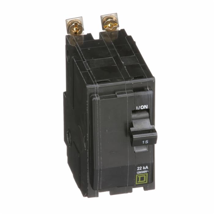 Square D™ Miniature Circuit Breaker, QO® Series, 2 Pole, 15 A, 120/240 VAC, 22 kA, Pressure Plate Connection, 14 to 8 AWG Al/Cu Wire, Bolt On Mount, For Use With: NQ Series Panelboards, 3 in H x 1.5 in W x 2.91 in D