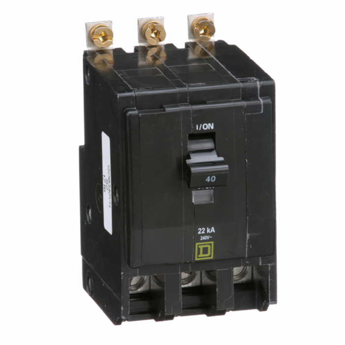 Square D™ Miniature Circuit Breaker, QO® Series, 3 Pole, 40 A, 120/240 VAC, 22 kA, Box Lug Connection, 8 to 2 AWG Al/Cu Wire, Bolt On Mount, For Use With: NQ Series Panelboards, 3 in H x 2.25 in W x 2.91 in D