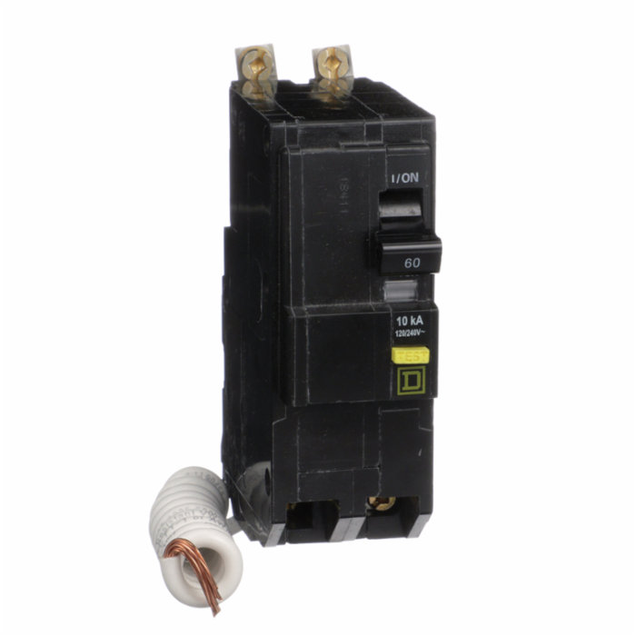Square D™ Ground Fault Circuit Breaker, QO® Series, 2 Pole, 60 A, 120/240 VAC, 10 kA, Box Lug Connection, 12 to 4 AWG Al, 14 to 6 AWG Cu Wire, Bolt On Mount, For Use With: NQ Series Panelboards, 4.12 in H x 1.5 in W x 2.91 in D