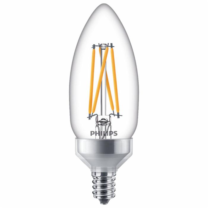 Philips LED Lamp, Blunt Tip Candle (B11) Lamp Shape, 5.5 W, 60 W Inc/Hal Equal, 2200 to 2700 K Color Temperature, Candelabra (E12) Lamp Base, 500 Lumens, 90 CRI, 15,000 hr Average Life, Clear Finish, 120 VAC, Dimmable, 1.4 in Dia x 3.9 in L