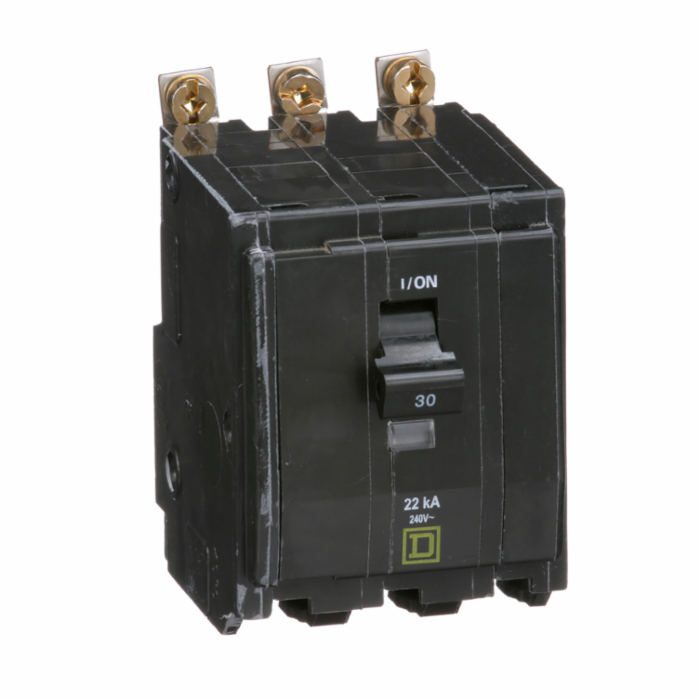 Square D™ Miniature Circuit Breaker, QO® Series, 3 Pole, 30 A, 120/240 VAC, 22 kA, Pressure Plate Connection, 14 to 8 AWG Al/Cu Wire, Bolt On Mount, For Use With: NQ Series Panelboards, 3 in H x 2.25 in W x 2.91 in D
