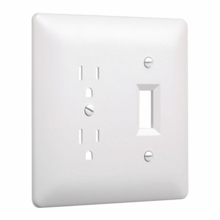 TAYMAC® Device Cover-Up Combination Wallplate, 2-Gang (1) Toggle (1) Duplex, Midway Size, Surface Mount, Plastic, White, Textured Finish