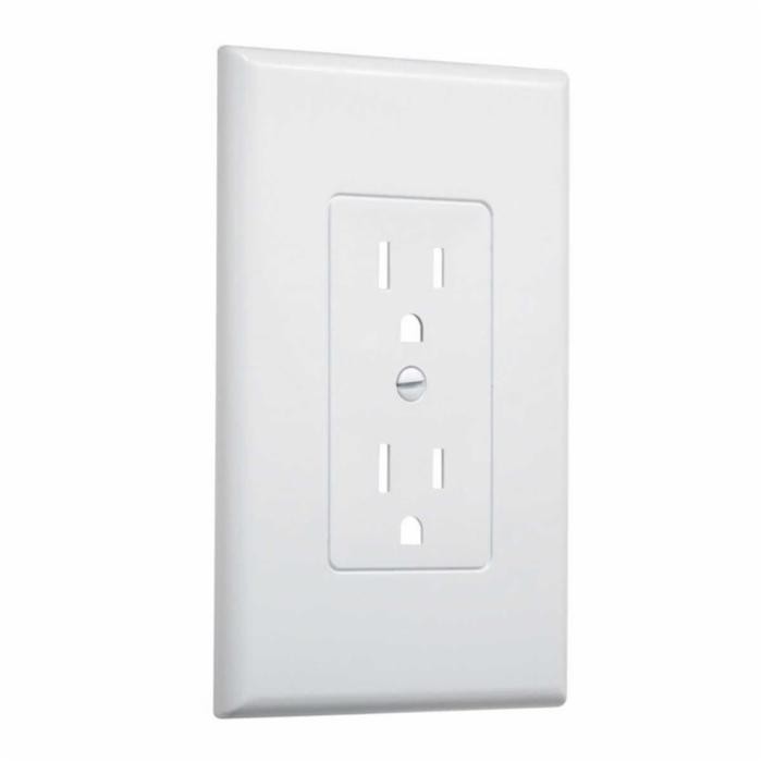 TAYMAC® Device Cover-Up Decorator/GFCI Wallplate, 1-Gang, Midway Size, Surface Mount, PVC, White, Finish