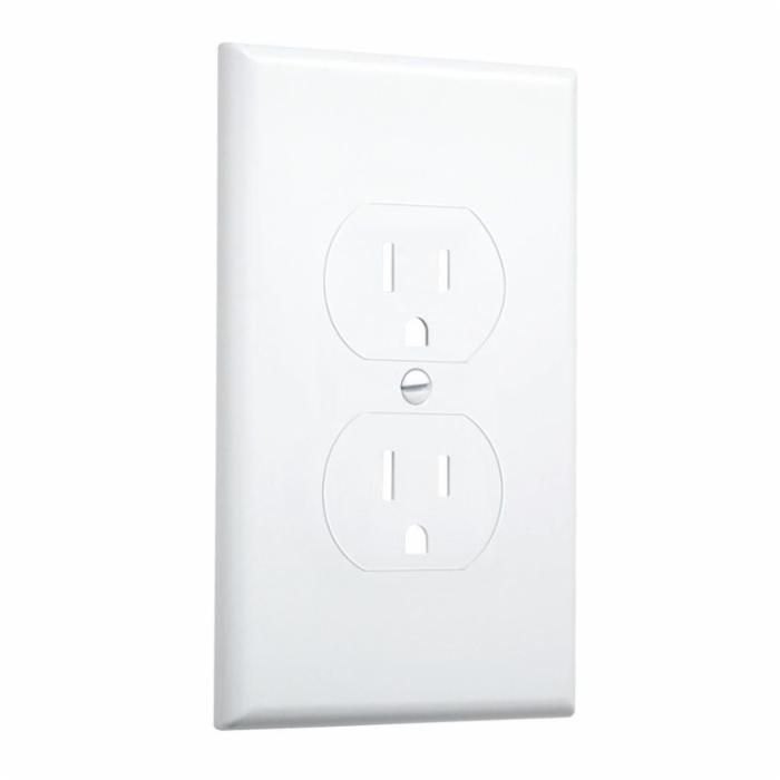TAYMAC® Device Cover-Up Duplex Receptacle Wallplate, 1-Gang, Oversize Size, Surface Mount, PVC, White, Smooth Finish