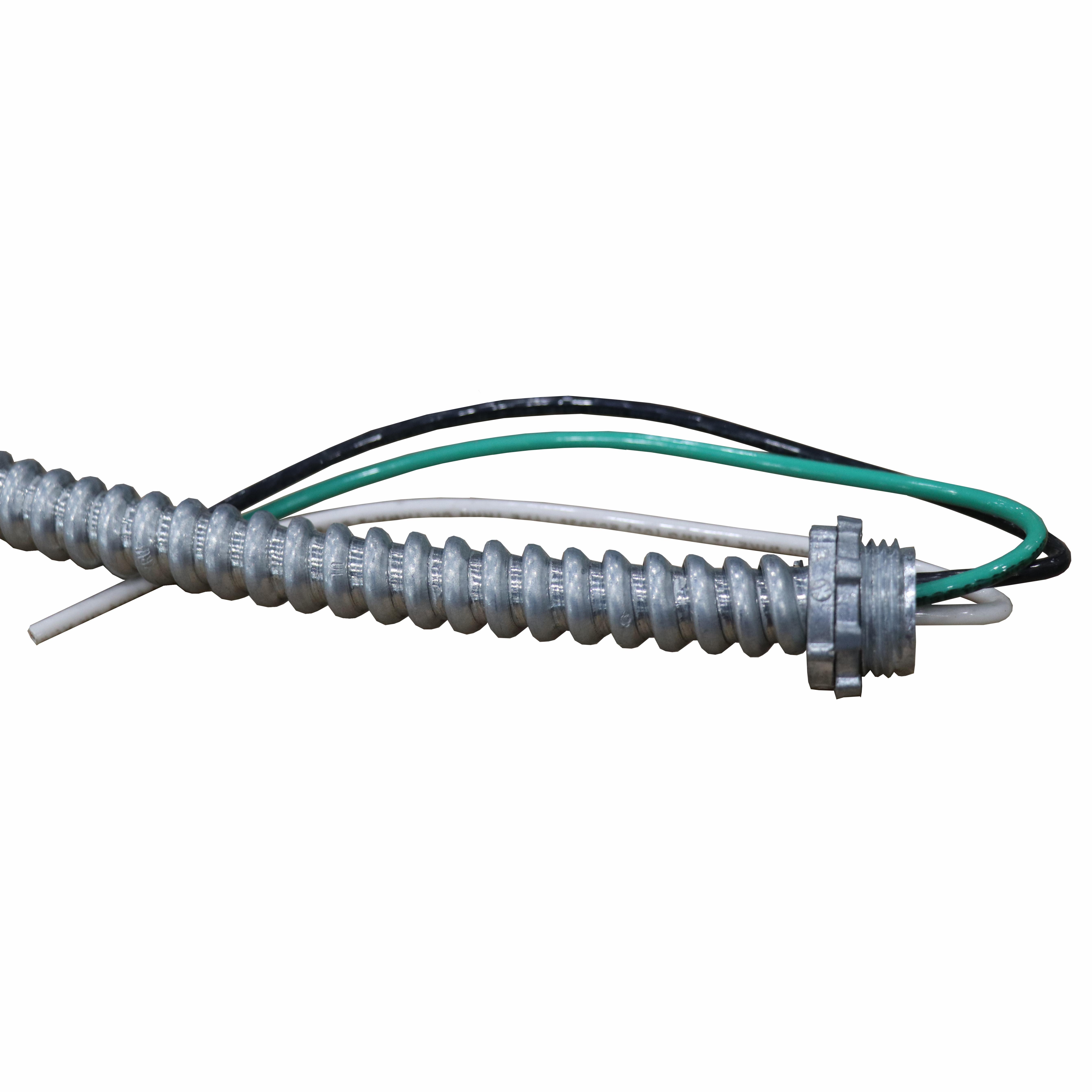 Fixture Whip, 3/8 in Dia, 6 ft L, 3 Wire, 12 AWG, Black, White, Green