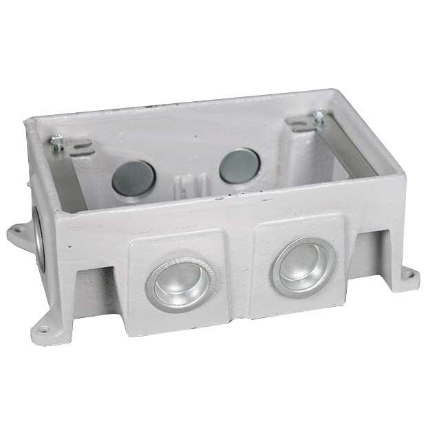 Wiremold® Floor Box, Fully Adjustable, Series: Omnibox™, 2 Gang, 6 Knockouts, 1 in Knockout, Rectangular, Concrete Mount, 94 cu-in, Cast Iron, 8-1/2 in L x 5-3/16 in W x 3-7/16 in H