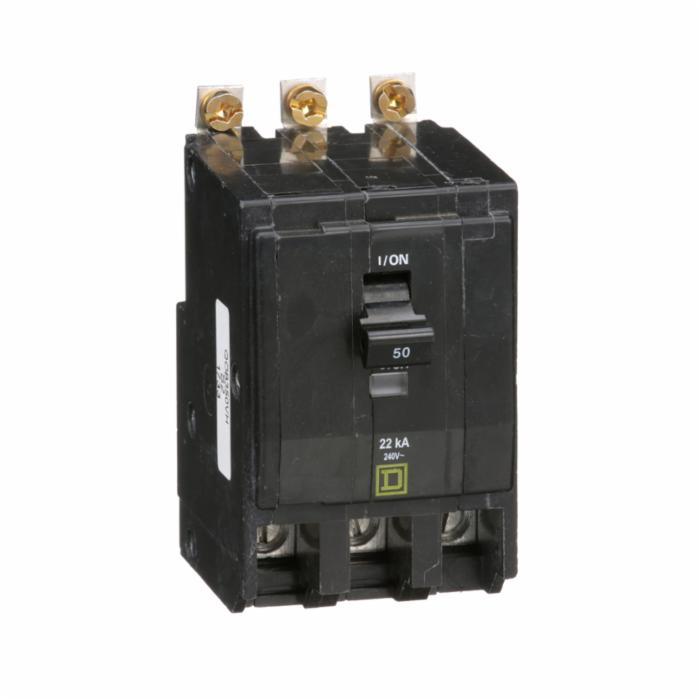 Square D™ Miniature Circuit Breaker, QO® Series, 3 Pole, 50 A, 120/240 VAC, 22 kA, Box Lug Connection, 8 to 2 AWG Al/Cu Wire, Bolt On Mount, For Use With: NQ Series Panelboards, 3.12 in H x 2.25 in W x 2.91 in D