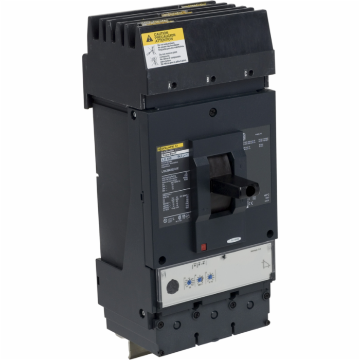 Square D™ Molded Case Circuit Breaker, L-Frame, PowerPact™ Series, 3 Pole, 400 A, 600 VAC, 18 kA, Electronic Standard Micrologic 3.3 LI Trip, Line/Load Lug Connection, 3/0 AWG to 500 MCM Al/Cu Wire, I-Line Mount, 14.7 in H x 5.94 in W x 6.61 in D