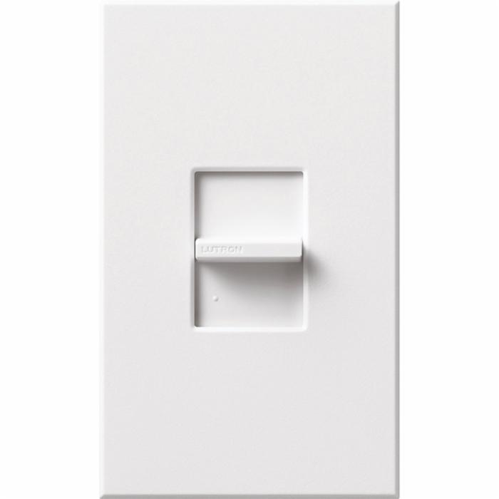 LutronĀ® Nova TĀ® Low Voltage Dimmer, Architectural Style Electronic Small Control, Series: NTELV-600, 120 VAC, 600 W, 60 Hz, 1 Poles, LED Lamp, Pre-Set Start, Operation Mode: Slide to Off, Slider, Wall Mount, Screw Terminal, 0 to 40 deg C, Plastic, White, 4.56 in H x 2.75 in W x 0.3 in D