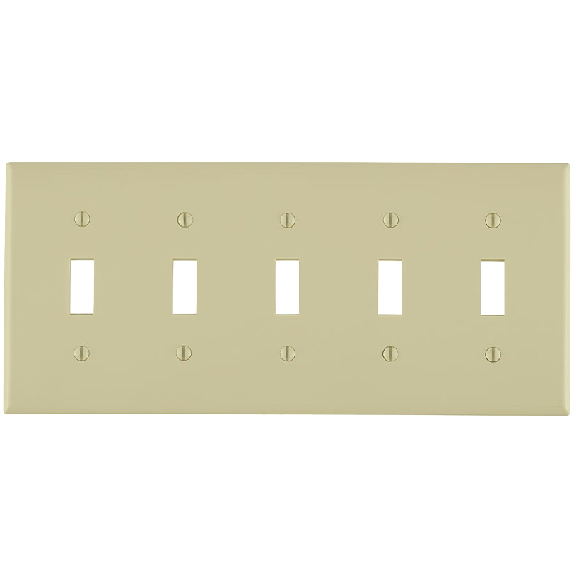 LevitonĀ® Toggle Wallplate, 5-Gang, Standard Size, Device Mount, Nylon, Ivory, Smooth Finish